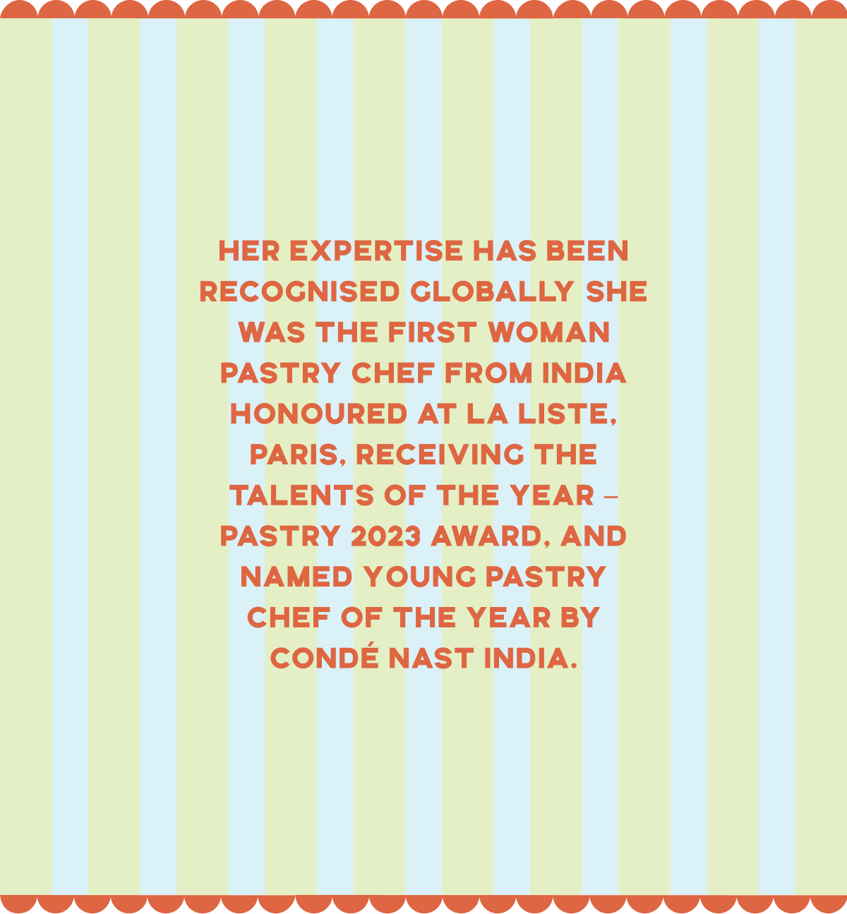 Renowned for her mastery at the intersection of Indian tradition and modern pastry, Chef Tejasvi Chandela has carved a distinct niche for herself as one of India's leading pastry voices. Her journey began at Le Cordon Bleu, Paris, where she trained in classical French patisserie. At just 22 years old, she returned to Jaipur and founded Dzurt Patisserie & Café - the city's first standalone French patisserie - an audacious step that redefined how a tier-2 city could experience global patisserie. Over the years, Dzurt has evolved into a café, gelato studio, and gifting destination, always guided by her flavour-first, design-forward, and constantly reinventing ethos. Chef Tejasvi later pursued a Master's in Chocolate Making at EPGB, Barcelona, which led to her co-founding All Things Chocolate, a Jaipur-based bean-to-bar brand celebrating Indian cacao.