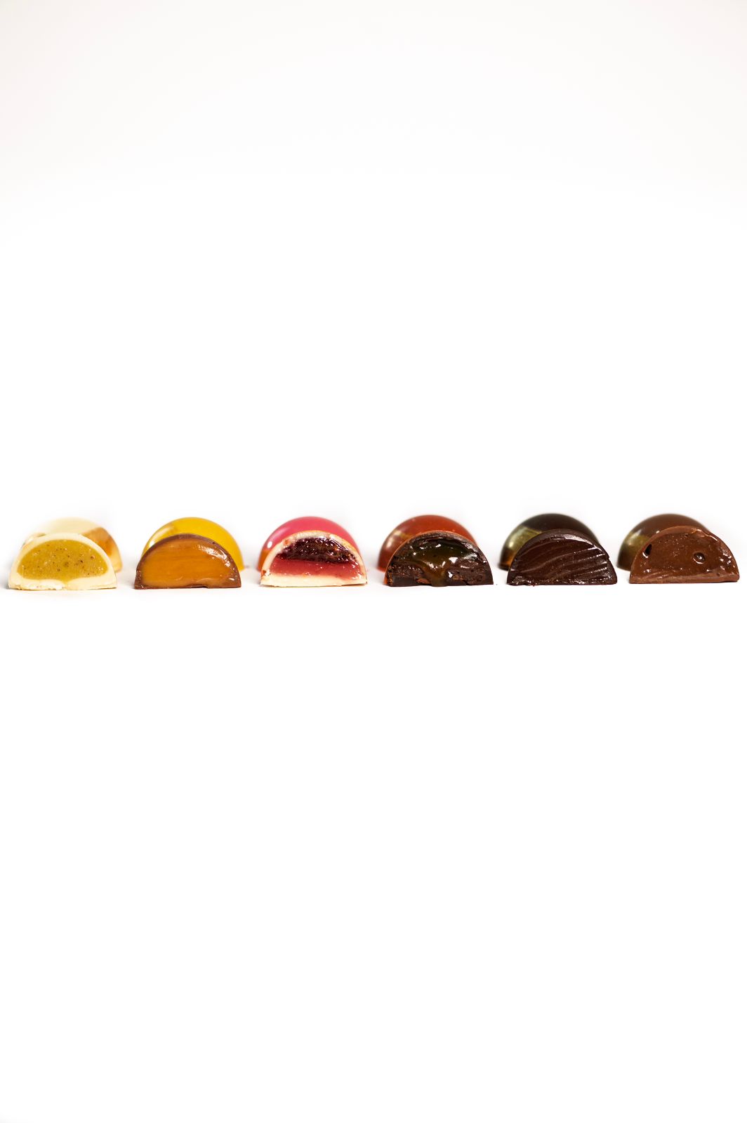 An elegant assortment of Six glossy Bon Bons filled with Festive Flavours. Choose an assorted box or craft your own selection from Orange, Raspberry, Caramel, Coffee, Chai, and Kulfi. A gift of colour, flavour, and indulgence.