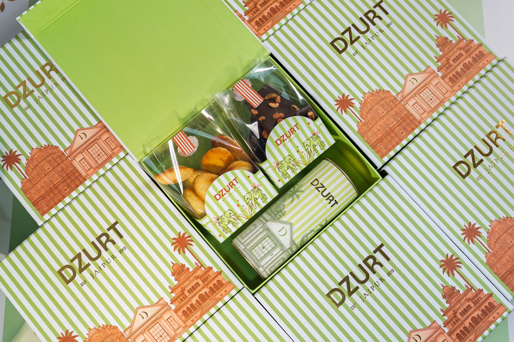 A festive trio of treats - Crunchy Chocolate Barks, an Artisanal Cookie Tin, and Tender Sugar-dusted Madeleines. Perfect for snacking and sharing anywhere.